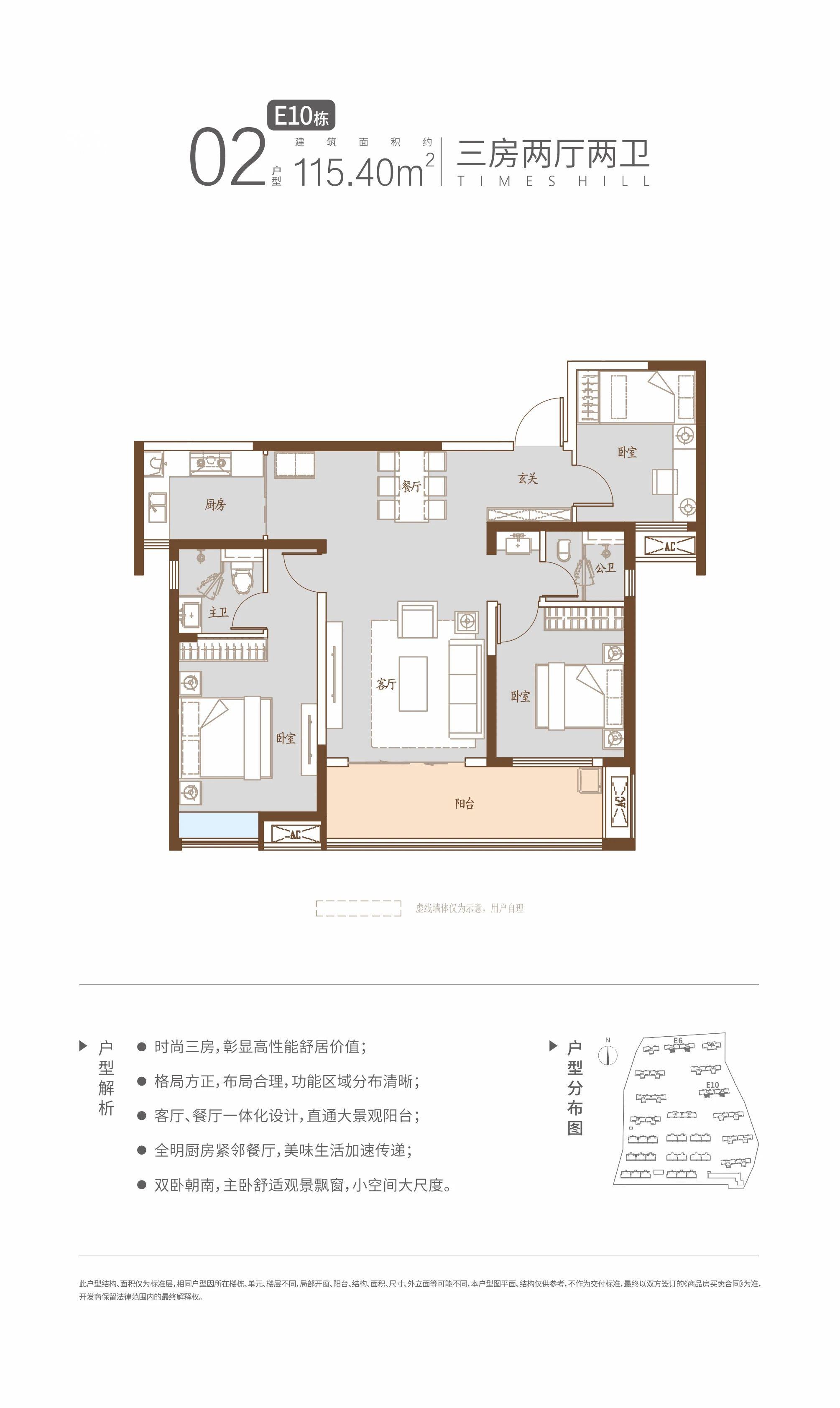 • E10栋02户型:3室2厅2卫1厨       面积:约115.40㎡