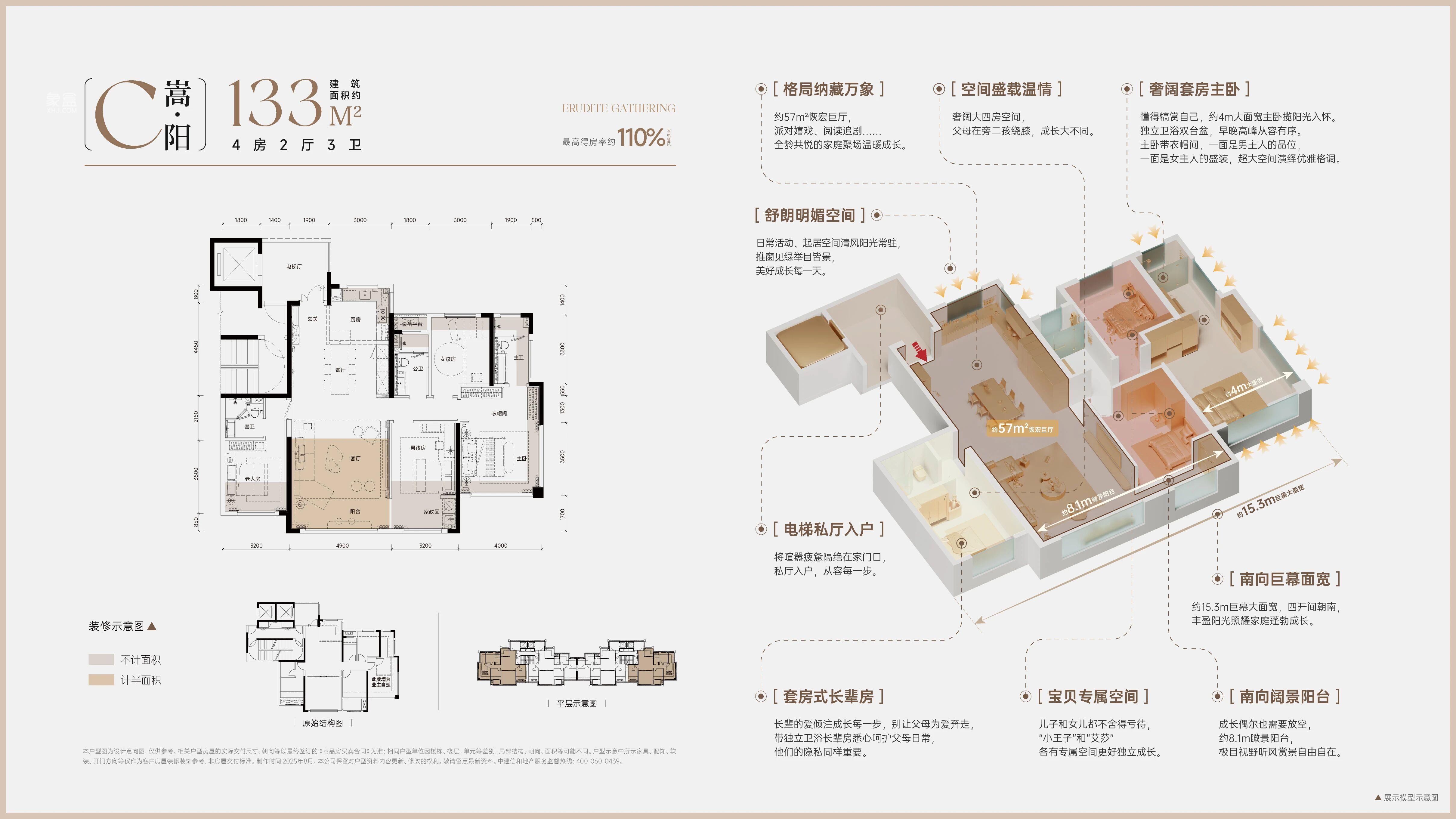 • 嵩阳C:4室2厅3卫1厨       面积:约133㎡