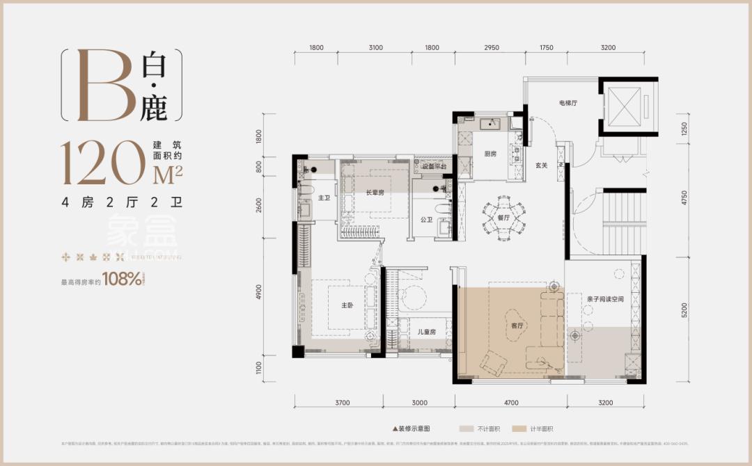 • 白鹿B:4室2厅2卫1厨       面积:约120㎡