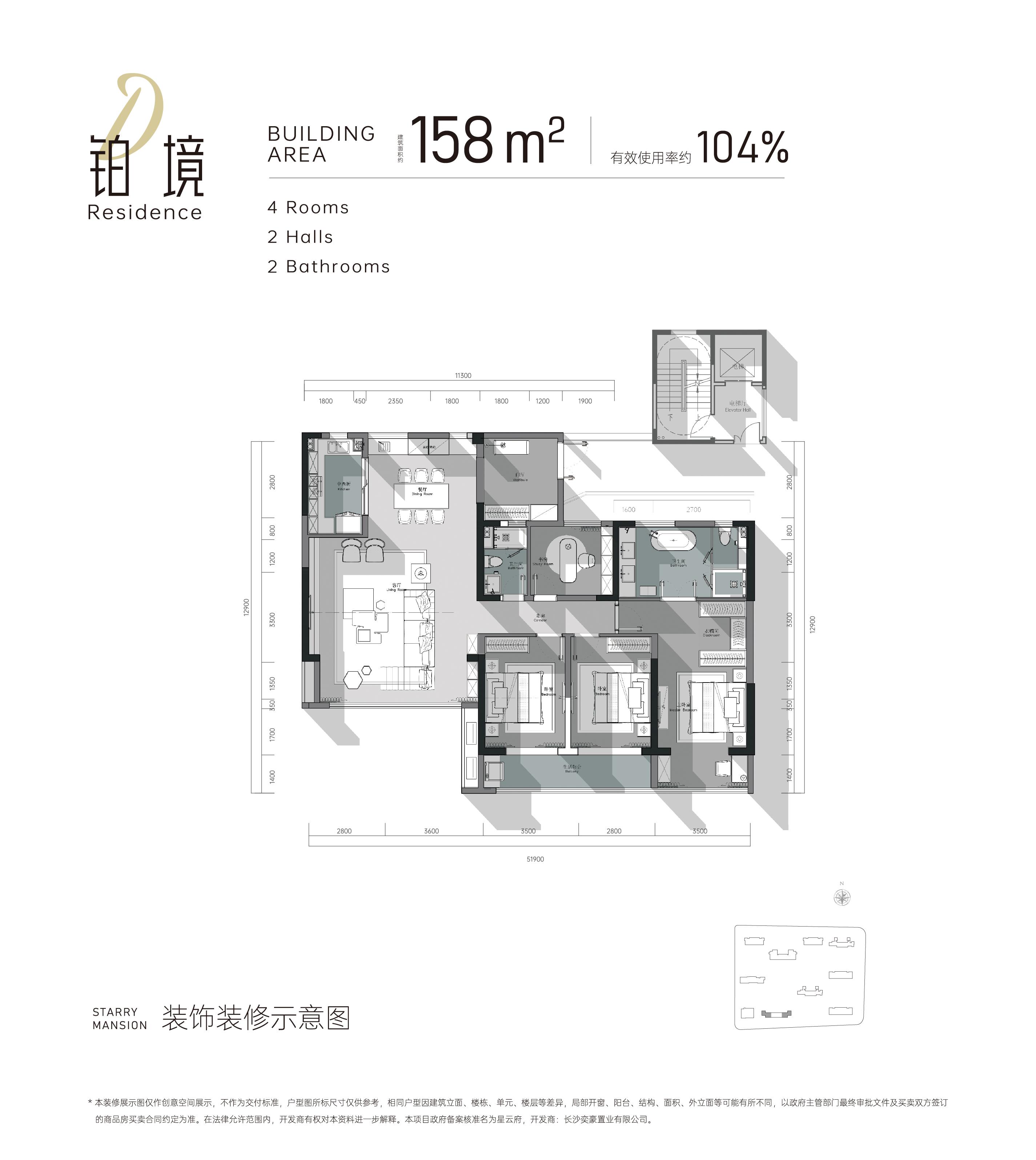 • 铂境:4室2厅2卫1厨       面积:约158㎡