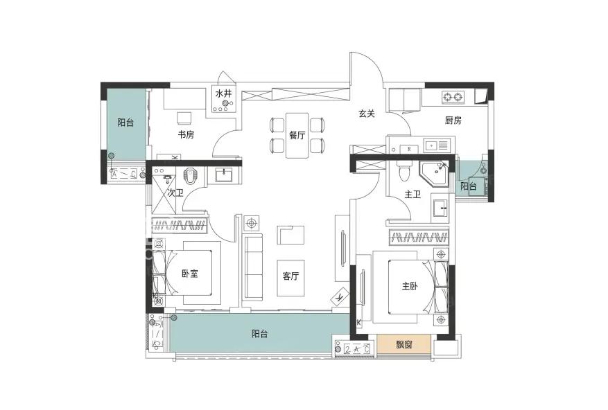 • B2户型:4室2厅2卫1厨       面积:约113㎡