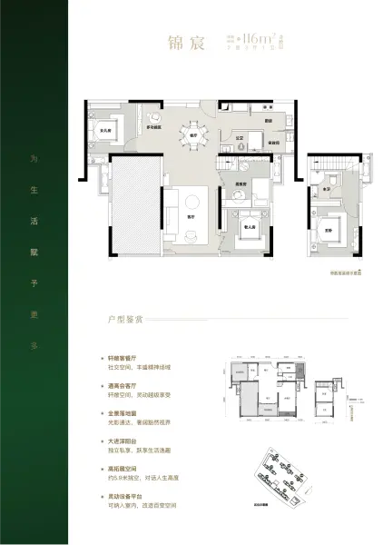 • 锦宸:2室3厅1卫1厨       面积:约116㎡